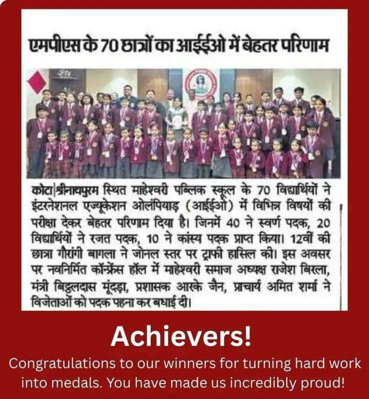 Congratulations to the brilliant minds of Maheshwari Public School, Kota, for their stellar performance in the International Education Olympiads 2025-26!
